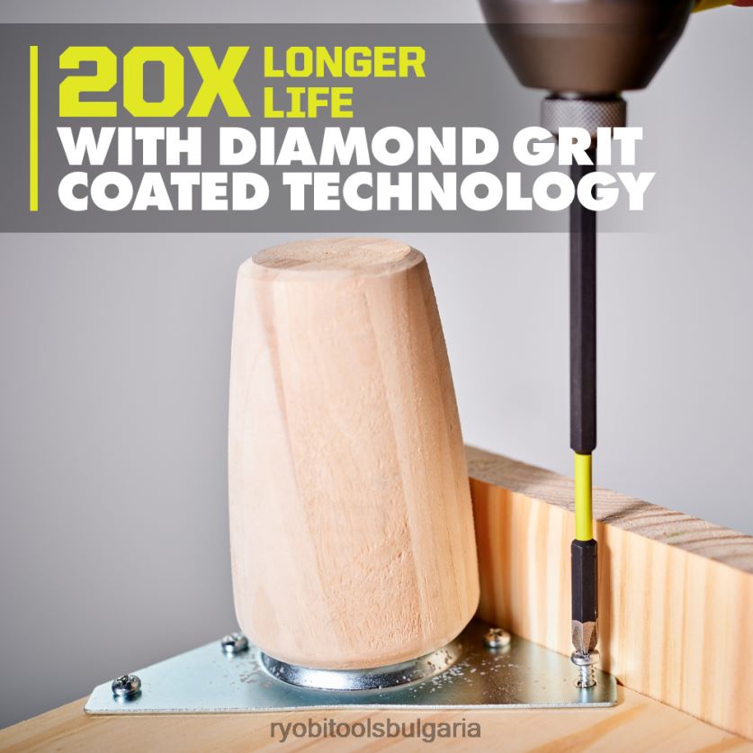 подобрете аксесоарите си за шофиране с технологията ryobi с диамантено покритие. ryobi 2 бр. 6″ диамантено зърнени ударни накрайници имат закален връх за подобрена издръжливост и 20 пъти по-дълъг живот. Технологията с диамантено зърнесто покритие също държи здраво закопчалката с 2 пъти по-силен захват и повишен контрол, дори при по-голям обхват. подобреното приспособление хваща закопчалката, докато завинтване, което води до по-малко оголени винтове. тези накрайници са удароустойчиви с 1/4″ шестостенна опашка, която им позволява да пасват директно във вашия патронник за бормашина или ударен винт. 6-инчовите накрайници осигуряват допълнителна дължина за труднодостъпни приложения. този комплект е идеално решение за накрайници за всички майстори и професионалисти, търсещи по-малко разочарование от разголени винтове и оптимален контрол преди задвижване. Поздравете инструмента сиколекция с първокласни аксесоари ryobi. 2 бр. 6″ диамантено зърнени ударни накрайници са съвместими със стандартни бормашини и ударни винтоверти и включват (2) 6″ диамантени ударни накрайника ph2.