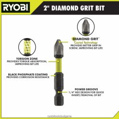 допълнете своята колекция от инструменти с технологията ryobi с диамантено покритие. 5 бр. 2″ ударни задвижващи битове включват технология с диамантено покритие. Технологията с диамантено покритие осигурява допълнителен слой защита за 20 пъти по-дълъг живот, подобрявайки издръжливостта на накрайника във всички приложения за завинтване с кръстосано завинтване. Диамантеното покритие осигурява 2 пъти по-силен захват, което позволява здрав задържане преди задвижване и поставяне на закопчалката в накрайника.този добавен захват създава подобно изживяване като магнитно зареден накрайник, но с по-сигурно захващане.технологията с диамантено покритие се захваща в закопчалката Phillips по време на задвижване за по-добро прилягане към предотвратява отделянето на кръстата глава.този комплект е идеално решение за задвижващи битове за всички бояджиии професионалисти, търсещи по-малко разочарование от оголени винтове и оптимален контрол преди задвижване. тези 5 бр. 2″ ударни накрайници са съвместими със стандартни бормашини и ударни винтоверти и включват (5) 2″ диамантени ph2 накрайници.