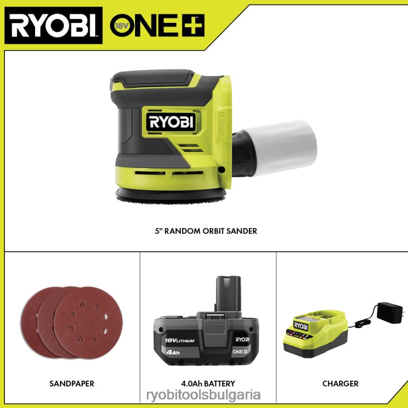 електрически инструменти бг RYOBI 18v one+ 5 произволно орбитален комплект шлифовъчна машина 6HNVZ2140
