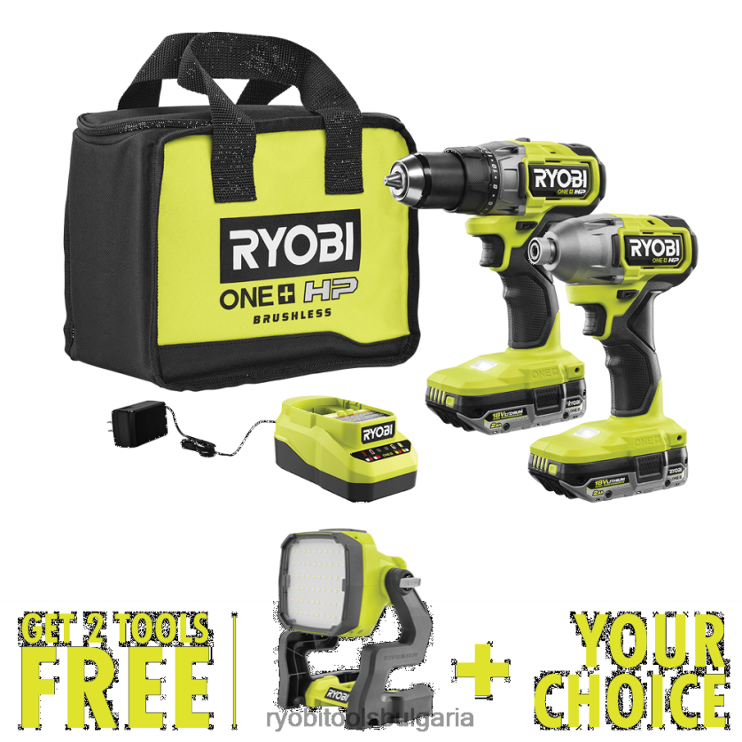 комбинираният комплект ryobi 18v one+ hp без четки с 2 инструмента включва 1/2″ бормашина/винтоверт, 1/4″ ударна винтоверт, (2) литиеви батерии 18v one+ 2ah с висока производителност , зарядно устройство и чанта за инструменти с безплатна 18v one+ хибридна LED работна лампа и безплатен избран инструмент по избор. бормашината/винтовертът 1/2″ разполага с безчетков мотор, осигуряващ до 20% по-бързо пробиване и до 50% повече въртящ момент, спестявайки време и енергия за всяко приложение. неговите 750 in-lbs. въртящ момент увеличават изходната мощност при пробиване в твърди материали . 1/4″ ударният винт разполага с безчетков мотор, осигуряващ до 25% по-бързо шофиране. безчетковият мотор осигурява до 2200 in-lbs. на въртящия момент,предоставяйки на този инструмент силата да забива по-дълги крепежни елементи през твърди материали. Най-доброто от всичко е, че е част от системата ryobi one+, която работи на една и съща платформа за батерии. този 18v one+ hp безчетков комбиниран комплект с 2 инструмента е подкрепен от 3-годишната гаранция на производителя на ryobi и включва pbldd01 18v one+ hp безчетков 1/2″ бормашина/винтоверт, pblid01 18v one+ hp безчетков 1/4″ ударен винтоверт, (2) pbp003 18v one+ 2ah литиеви батерии с висока производителност, зарядно устройство, чанта и ръководства за оператора с безплатна pcl633 18v one+ хибридна LED работна светлина и безплатен избор на инструмент.