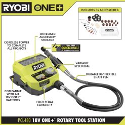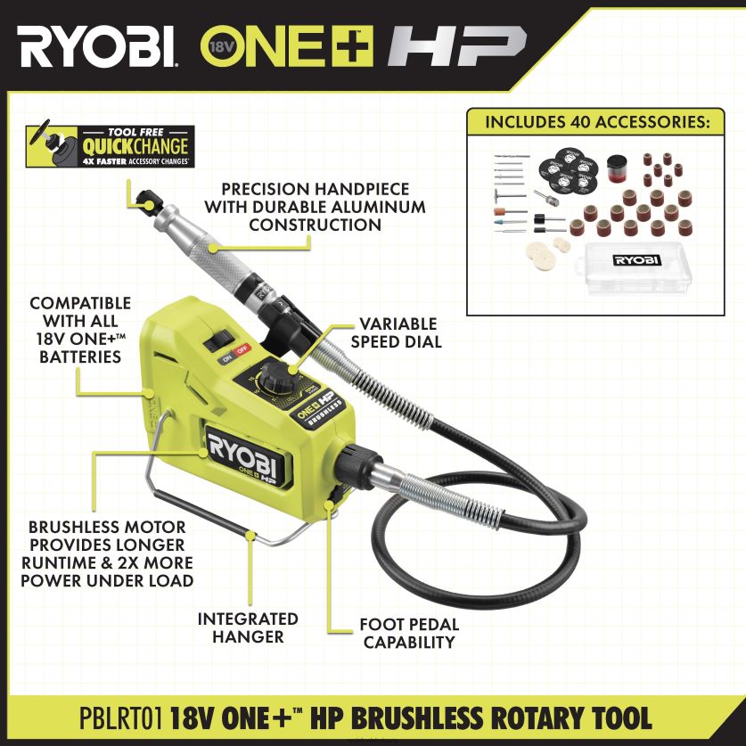 ryobi представя безчетковия безжичен ротационен инструмент one+ hp 18v. въртящият се инструмент one+ hp е проектиран да отговаря на професионалните очаквания, предоставяйки мощно решение с по-дълго време на работа и 2 пъти повече мощност при натоварване. дискът с променлива скорост позволява на потребителите да избират от 1000 номинални оборота в минута до 25 000 номинални оборота в минута, което помага да се осигури максимална прецизност и точност за всички приложения. прецизната ръчна част използва висококачествена алуминиева конструкция и разполага с новата иновативна цанга за бърза смяна с 4 пъти по-бърза смяна на аксесоарите, което прави смяната на аксесоари бърза и лесна. този инструмент също така е съвместим с крачен педал, осигурявайки несравнима прецизност и контрол. подкрепен от 3-годишната гаранция на производителя на ryobi, този ротационен инструмент включва 36 инча гъвкав вал, 40 аксесоара за шлайфане/рязане/шлайфане/полиране, кутия за съхранение на аксесоари, гаечен ключ и ръководство за оператора. батерията и зарядното се продават отделно.