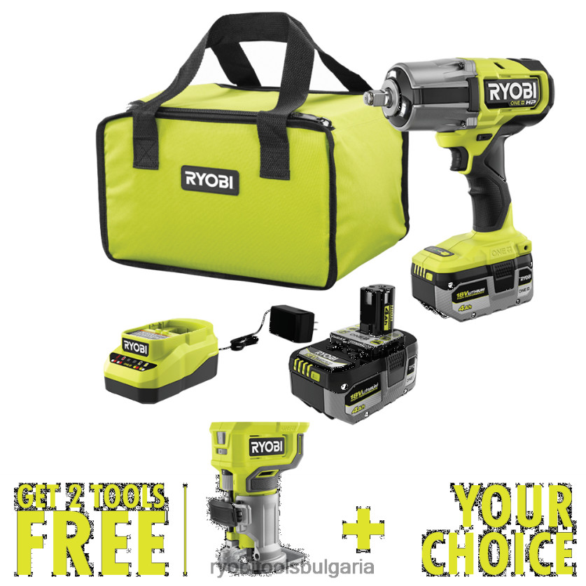 ryobi представя 18v one+ hp безчетков комплект ударни ключове с висок въртящ момент с безплатен компактен рутер 18v one+ и безплатен избор на инструмент. Технологията one+ hp осигурява повече мощност, време на работа, издръжливост и скорост, използвайки безчеткови двигатели, усъвършенствана електроника и високопроизводителна литиева технология. този гаечен ключ разполага с безчетков мотор, доставящ до 1170 ft-lbs. въртящ момент на откъсване и 7 пъти по-висока скорост на отстраняване за превъзходство при взискателни приложения. контролната платка с 4 режима осигурява ниски/средни и високи скорости, докато автоматичният режим предотвратява пренатягане напред и контролирано отстраняване на заден ход. лятата кутия на скоростната кутия има по-голяма издръжливост при сурови условияest работна среда. този ударен гайковерт е проектиран с оглед на ефективността, наковалнята с фрикционен пръстен осигурява бърза смяна на гнездото, а трилъчевите светодиодни работни светлини позволяват ясна видимост на работното пространство. това партньорство на мощност и производителност го прави идеалното решение за всеки автомобилен магазин. част от системата ryobi one+ – всяка батерия 18v one+ работи с всеки продукт 18v one+. този 18v one+ hp безчетков 4-режимен 1/2 инчов ударен гайковерт с висок въртящ момент е подкрепен от 3-годишна гаранция от производителя на ryobi и включва pbliw01 18v one+ hp безчетков 4-режимен 1/2” ударен гайковерт с висок въртящ момент, (2 ) pbp004 18v one+ 4ah литиеви батерии с висока производителност, зарядно устройство, чанта и ръководство за оператора с безплатен компактен рутер pcl424 18v one+ и безплатен избор на инструмент.