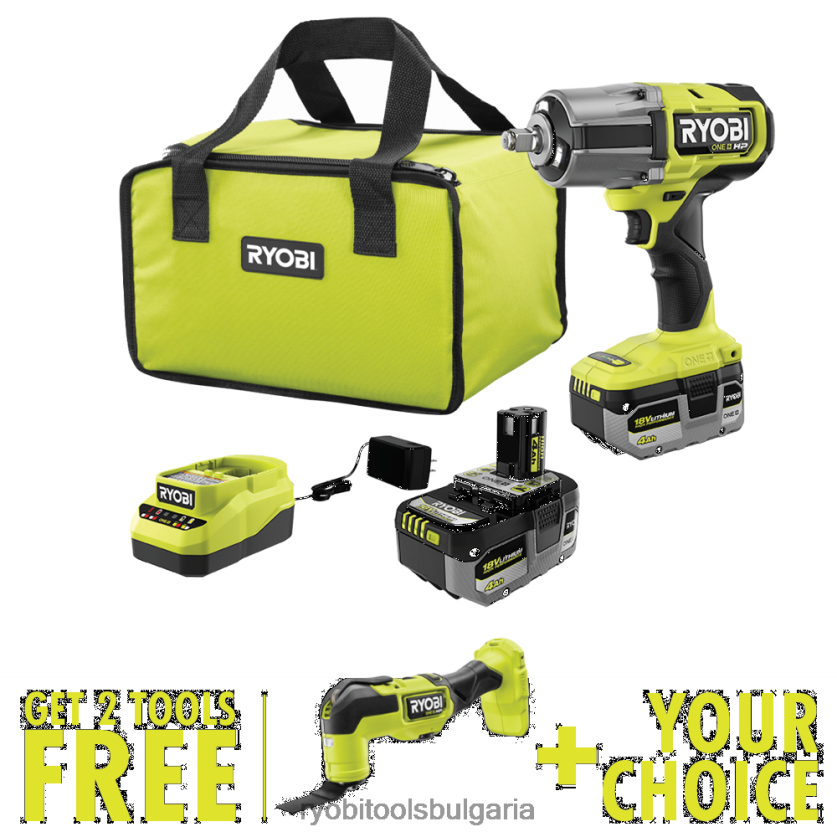 електрически инструменти бг RYOBI 18v one+ hp безчетков 4-режимен 1/2 комплект ударни ключове с висок въртящ момент с безплатен многофункционален инструмент 18v one+ hp без четки и безплатен инструмен
