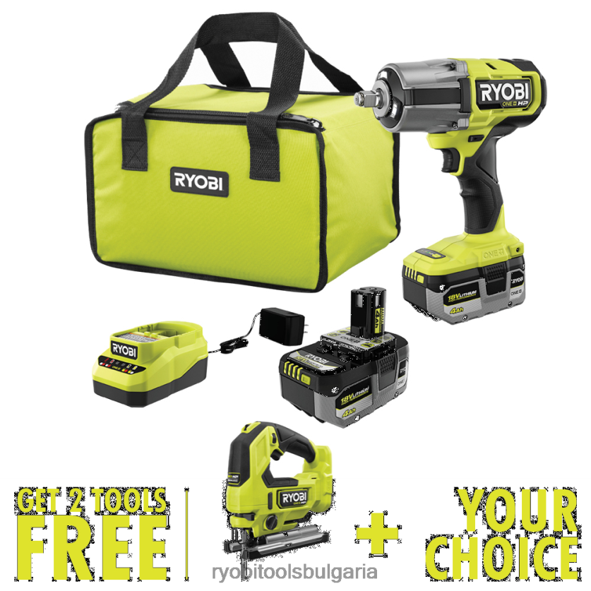 електрически инструменти бг RYOBI 18v one+ hp безчетков 4-режимен 1/2 комплект ударни ключове с висок въртящ момент с безплатен безчетков прободен трион 18v one+ hp и безплатен инструмент по избор 6HN