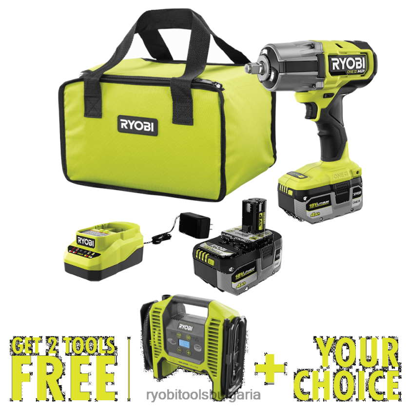 електрически инструменти бг RYOBI 18v one+ hp безчетков 4-режимен 1/2 комплект ударни ключове с висок въртящ момент с безплатен 18v one+ двуфункционален надувател/дефлатор и безплатен инструмент по из