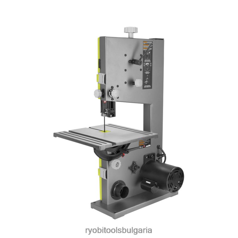 мощен 2,5 ампера индукционен двигател. прозорец за проследяване на острието. система за бързо настройване на опъването на острието. регулиране на водача на рейка и пиньон. Копчето за опъване на острието с микро регулиране и прецизните алуминиеви вътрешни колела на острието минимизират вибрациите. накланяне на масата от 0-45 градуса. плъзгащ се габарит. включва 9 инча лентов трион се предлага с 1/4 инча x 6t острие и уред за скосяване.
