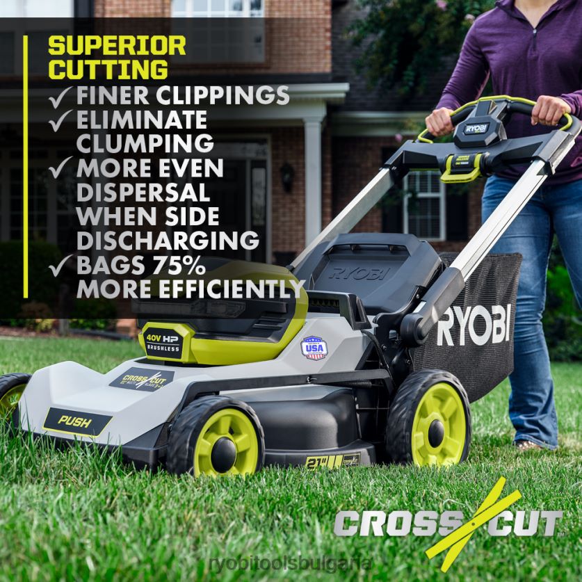 безчетковата ryobi 40v hp 21″ акумулаторна косачка за трева с много остриета доставя мощността на газ с удобството на безжичната връзка. първокласната безчеткова hp моторът осигурява повече мощност, по-дълго време на работа и по-дълъг живот на мотора.започва само с натискане на бутон, без проблеми с газ, масло или поддръжка.тази косачка е идеална за дворове до 1/2 акра, включваща двойно активни портове за батерии и 40-волтова 7.5ah батерия, която осигурява до 50 минути време на работа. Системата с напречно рязане с множество остриета предлага две остриета за превъзходна производителност на рязане или едно острие за по-дълго време на работа. Издръжливият 21″ дек е лек , издържа на корозия и се покрива от доживотна гаранция. косачката има голямо колело с височина 10″ за лесна маневреност, а платформата разполага със 7-pпозиция за регулиране на височината в една точка, за да изберете лесно височината на вашата трева между 1,5″ и 4″. с функциите за косене 3 в 1 можете да избирате между функции за пакетиране, мулчиране или странично изхвърляне. лесното повдигане на торбата с едно движение ви позволява бързо и лесно да изпразните торбата за събиране на трева, а алуминиевите дръжки се сгъват с едно докосване за компактно, вертикално съхранение. тази косачка включва 40v бързо зарядно устройство за зареждане на батериите ви 4 пъти по-бързо от стандартното зарядно устройство. тази косачка е с гордост произведена в САЩ с глобални материали и е подкрепена от 5-годишна гаранция за инструмента.