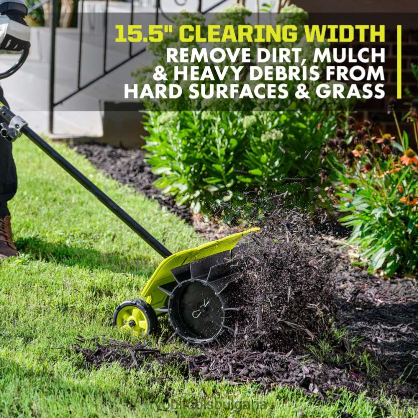 - премахва мръсотия, мулч, тежки отломки от твърди повърхности и трева