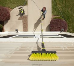 телескопичният удължителен прът ryobi 18′ е идеалният аксесоар за почистване на тези труднодостъпни места. полюсните телескопи с помощта на заключващи лостове, така че можете лесно да регулирате перфектната дължина и до 18 фута. Инструментът е лек и разполага с ергономична дръжка с обърнат спусък, който облекчава натиска върху ръката и пръстите ви. с включената приставка за четка, можете да почиствате различни повърхности с лекота. телескопичният удължителен стълб ryobi е съвместим с повечето електрически и газови водоструйки под налягане до 4200 psi.