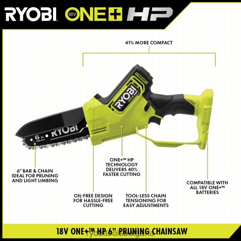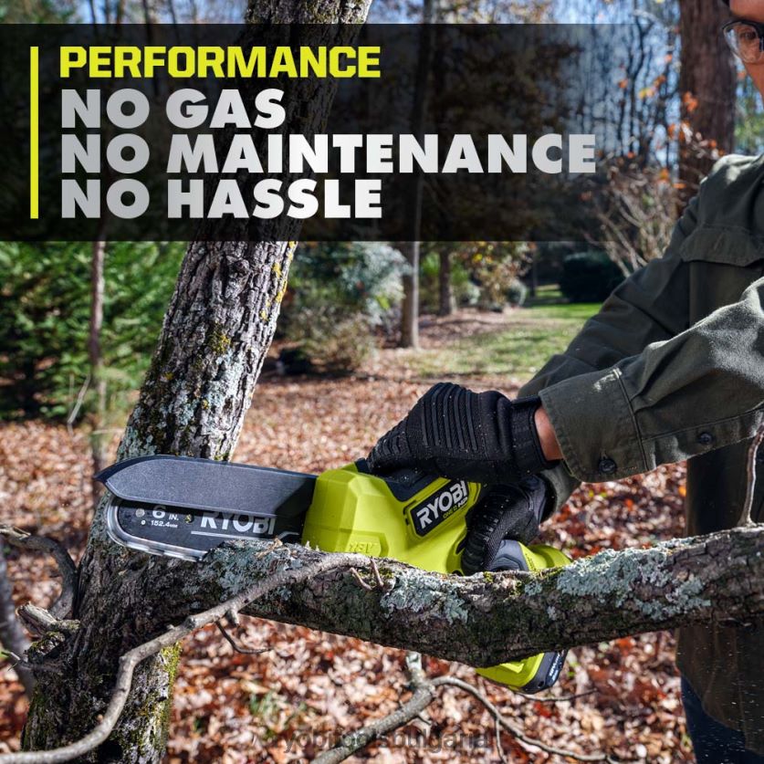 на открито бг RYOBI 18v one+ hp 6 компактен безчетков верижен трион за подрязване 6HNVZ2353