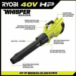 подобрете вашата 40v система с комплекта безжичен реактивен вентилатор 40v hp. използвайки технология 40v к.с. и дизайн на реактивен вентилатор, този вентилатор осигурява повече мощност от 26cc газов вентилатор, което го прави истински заместител на газа. вентилаторът на hp jet осигурява до 22 минути работа с включената литиева батерия 40v 4ah. Технологията 40v hp съчетава безчетков двигател, усъвършенствана електроника и високоефективна литиева технология, за да осигури 600 cfm и 155 mph, което я прави идеална за справяне с мокри листа и умерени остатъци от морава. изпитайте производителност на газ само с натискане на спусъка. без газ, без поддръжка, без проблеми. този вентилатор от серията whisper е проектиран да бъде 89% по-тих от газта и дори по-тих от другите безжични духалки. проектиран с шумопоглъщаща пянаd уникално позициониран вентилатор, можете да работите по всяко време на деня, без да пречите на другите. лесно контролирайте изходящия въздух със спусъка с променлива скорост и турбо бутона, така че можете да наберете обратно, когато сте в деликатни зони, и да активирате, когато почиствате твърди отломки. вентилаторът се предлага и с персонализиран накрайник за скорост за повишена скорост на въздуха. Най-доброто от всичко е, че е част от системата ryobi 40v, където всяка 40v батерия работи с всеки 40v продукт. този вентилатор от 40v к.с. е подкрепен от 5-годишна гаранция от производителя на ryobi, а включената батерия е подкрепена от 3-годишна гаранция за батерията от ryobi. този комплект включва вентилатор ry404013 40v, литиева батерия op40404 40v 4ah, зарядно устройство op404 40v, тръба за вентилация и ръководства за оператора.