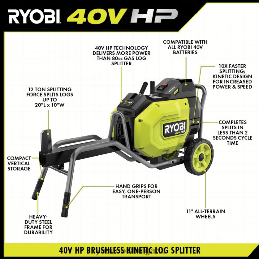 на открито бг RYOBI 40v к.с. безчетков кинетичен комплект за цепене на трупи 6HNVZ2423