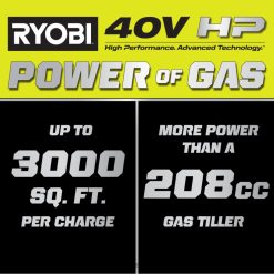 - Технологията 40v hp доставя повече мощност от 52cc газов шнек