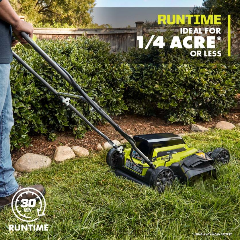 влезте в системата 40v с косачката ryobi 40v. тази компактна и лека косачка осигурява до 30 минути работа с включената 40v 6ah батерия, която ви дава производителност на газ с натискането на един бутон без караница или поддръжка. със седем различни позиции на височина, вариращи от 1,5 до 4 инча, можете бързо да изберете идеалната височина за вашата морава с едноточково регулиране на височината. освен това системата ryobi 40v ви позволява да използвате всяка 40v батерия с всеки 40v продукт, което улеснява превключването между инструментите. осигурете спокойствие с 5-годишна гаранция за инструменти от производителя и 3-годишна гаранция за батерията от производителя и вземете всичко необходимо с включената косачка за трева ry401010 40v 18″, литиева батерия op40605 40v 6ah, зарядно op404 40v, ключ за стартиране, странаизпускателен улей и ръководства за оператора.