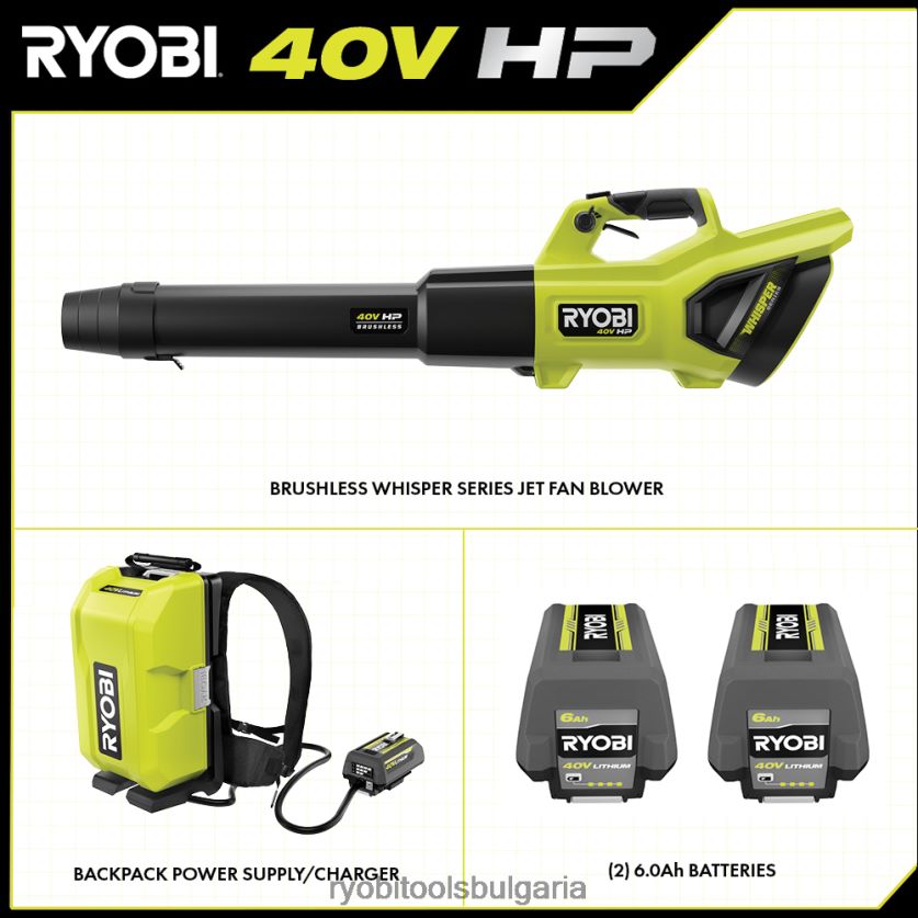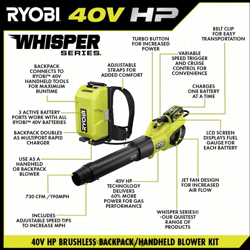 на открито бг RYOBI 40v hp безчеткова раница/ръчен вентилатор от серия whisper 6HNVZ2307