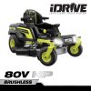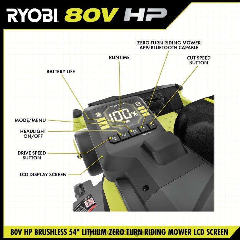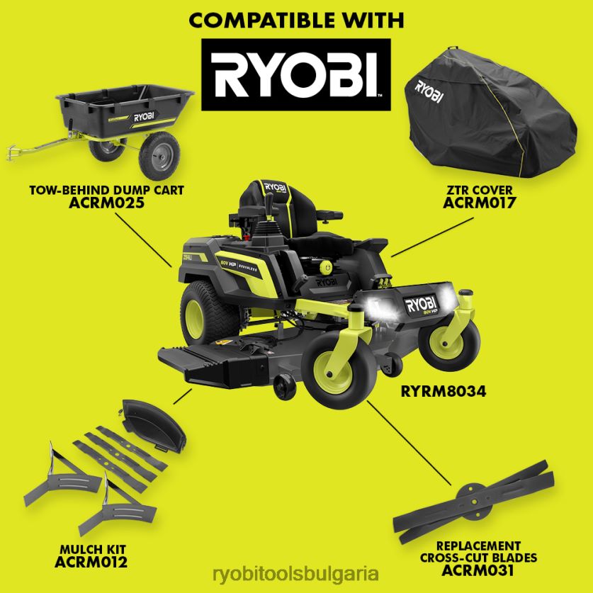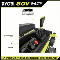представяме първата литиево-йонна батерия на ryobi, захранвана с нулев оборот, ryobi 80v hp 54″ литиево-електрическа ztr*. Технологията на hp и 80v батерии се комбинират, за да осигурят мощност, еквивалентна на 42 конски сили газов двигател*, като същевременно елиминира неудобството и поддръжката на газова косачка.този мотоциклетист коси до 4 акра с едно зареждане с помощта на 5 безчеткови мотора, (3) батерии 80v 10ah и (4) батерии 40v 12ah, с хипер зарядно устройство, което се презарежда напълно за 5 часа, така че да сте готови за следващата си работа революционната система idrive използва интуитивен джойстик за управление с една ръка, за да маневрирате около обекти по-лесно от традиционния ztr иновативният LCD екран показва времето за работа, живота на батерията, и скорост на рязане/задвижване, докато се използва, докато приложението за косачка ви позволява да наблюдавате времето за зареждане и батериятавсеки живот от разстояние. тази самоходна косачка разполага с напречна система с множество остриета, осигуряваща превъзходна производителност на рязане и мулчиране, докато 12-точковото регулиране на височината ви позволява да изберете перфектната височина на косене между 1,5″ и 4,5″. гуменият страничен изпускателен улей улеснява маневрирането около ландшафта, така че потребителите да не са ограничени от това къде могат да режат. проектирана с мисъл за комфорт и удобство, тази косачка разполага с първокласно окачване на седалката, 2 USB порта за зареждане на телефони, отделение за съхранение и светодиодни фарове. мобилна услуга, налична в избрани региони. ако вашата косачка изисква внимание, сертифициран техник за поддръжка на ryobi може да извърши диагностика и обслужване направо от дома ви. някои услуги може да изискват да занесете косачката си в един от над 300-те сервизни центъра в цялата страна. поддръжката на тревата никога няма да бъде същата благодарение на безчетковата 54-инчова литиева електрическа косачка с нулев оборот ryobi 80v hp.
