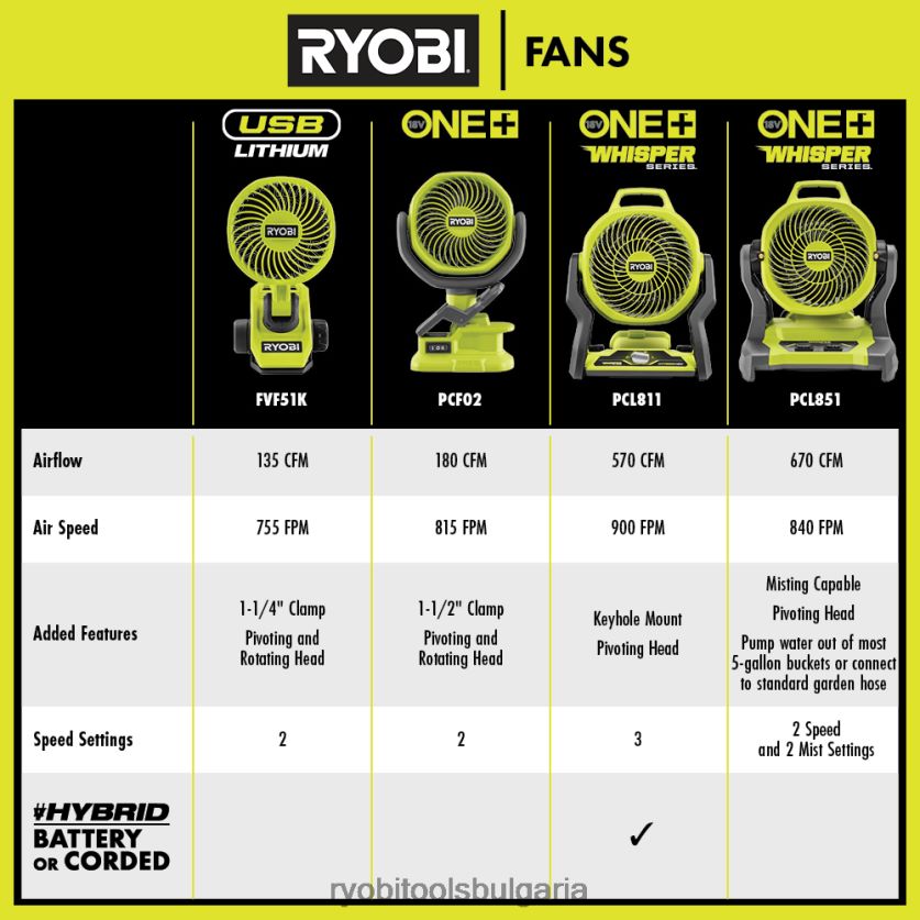 разширете своята система ryobi 18v one+ с комплекта вентилатори ryobi 18v 4 инча със скоба с 1,5 ah батерия и 18v зарядно устройство. този 18v вентилатор със скоби е най-добрият в преносимостта. не само осигурява безжично захранване, но има способността да захваща материали с дебелина до 1-1/2 инча, включително тръби и дървен материал, осигурявайки оптимална гъвкавост на работната площадка или у дома. с 2 настройки на скоростта и многопосочна въртяща се глава, вентилаторът със скоба ryobi 18v 4 инча осигурява персонализиран, личен въздушен поток. вентилаторът на ryobi 18v 4 инча има несравним въздушен поток за своя размер, с над 180 cfm. с над 40 часа време на работа, ще можете да останете хладни през целия ден. включените батерия и зарядно устройство са съвместими с всички инструменти ryobi 18v one+. този 18v 4-инчов комплект вентилатори със скоби е подкрепен от ryobi 3-годгаранция от производителя и включва 1,5 ah батерия, 18v зарядно устройство и ръководство за експлоатация.