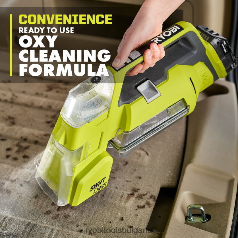 разширете своята система ryobi 18v one+ с комплекта за почистване на петна 18v one+ swiftclean. swiftclean е готов за ежедневните разливи и бъркотии. вземете своя безжичен swiftclean и оставете четките за ръце в гаража, заедно с болките в гърба, които идват заедно с традиционните, ръчни методи за почистване. този препарат за почистване на петна е идеален за почистване на свежи разливи. задвижваната почистваща четка разбърква и повдига остатъците за безпроблемно почистване на тапицерия, седалки на кола, стълби, килими и др. безжичната преносимост и лекият дизайн са перфектни за незабавно почистване на бъркотии, за да се предотврати образуването на петна. удобството на ryobi swiftclean е в силата да прави всичко с безжично захранване; прецизно напръскайте разтвора, разклатете с електрическата четка, след това повдигнете петното с прахамощно засмукване. Включеният 6oz ryobi oxy почистващ разтвор е готова за употреба формула, което означава, че няма разреждане, смесване и проблеми. всички прозрачни компоненти на вашия swiftclean могат да се мият в съдомиялна машина с горна стойка за лесна поддръжка и почистване на инструмента. този комплект за почистване на петна 18v swiftclean е подкрепен от 3-годишна гаранция на производителя на ryobi и включва литиева батерия 18v 2ah, зарядно устройство и бутилка от 6oz почистващ разтвор ryobi oxy. допълнителен окси разтвор може да бъде намерен на homdepot.com чрез търсене номер на модел a32s056.