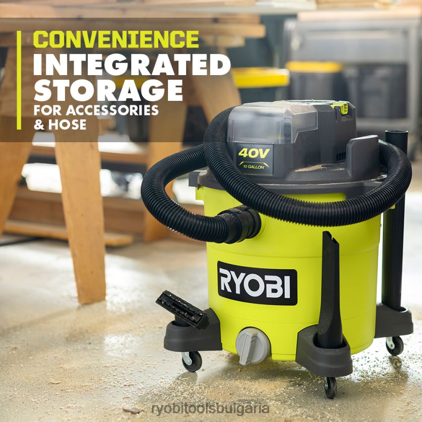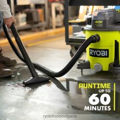 подобрете вашата ryobi 40v система с 40v 10 галон мокър/сух вакуум. тази прахосмукачка за мокро/сухо осигурява работа с кабел с до 80 cfm и 50 iow. мощното засмукване, съчетано с безжично удобство, прави тази прахосмукачка идеалното решение за почистване около работната площадка, работилницата, колата и други, където електрическият контакт не е лесно достъпен. интегрираното хранилище удобно побира включения инструмент за процепи, накрайник за под и удължители. за допълнителна защита, този вакуум разполага с водоустойчива кутия за батерии, която отговаря на стандартите ipx4. гъвкавият маркуч 8′ x 1-7/8″ се заключва сигурно на място, за да се избегне случайно прекъсване. този вакуум включва патронен филтър за сухи приложения и филтър от пяна за мокри приложения. този работещ с батерии мокър/сух вакуум е съвместим с ryobi 40v sсистема от инструменти, батерии и зарядни устройства. подкрепен от 3-годишната гаранция на производителя на ryobi, прахосмукачката 40v 10 галона за мокро/сухо включва патронен филтър, филтър от пяна, маркуч 8′ x 1-7/8′, инструмент за процепи, накрайник за под, тапа за източване, (2) удължителни накрайници , (2) щипки за удължителна пръчка, (4) колела и ръководство за оператора. батерията и зарядното се продават отделно.