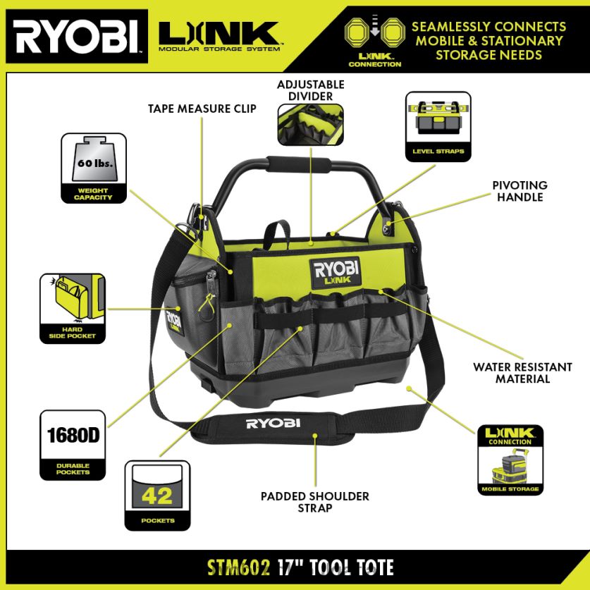 съхранение бг RYOBI връзка 17 отворена чанта за инструменти 6HNVZ2657
