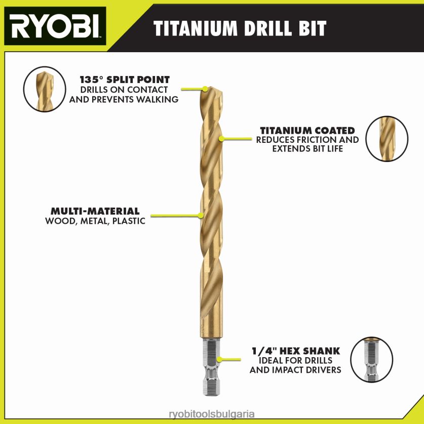 ryobi представя комплекта титаниеви свредла (22 части). комплектът свредла с титаниево покритие от 22 части ryobi е чудесно допълнение към всеки комплект инструменти. неговите битове варират в размер от 1/16 инча до 3/8 инча и всички имат 135 градусов разделен връх, който предотвратява ходенето. всички битове разполагат с 1/4 инча шестостенна опашка за лесна смяна на битовете и могат да се използват за пробиване на дърво, метал и пластмаса. комплектът включва 22 битове с титаниево покритие от 1/16 инча до 3/8 инча за повече неща ryobi, посетете ryobitools.com.
