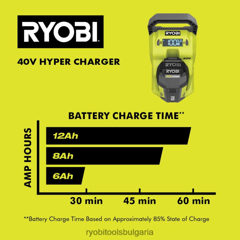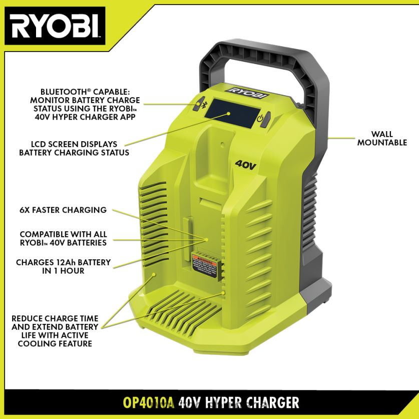 разширете вашата ryobi 40v система с 40v литиево хипер зарядно устройство. с 6 пъти по-бързо зареждане от стандартно зарядно устройство, това зарядно устройство е най-бързото зарядно устройство ryobi 40v в системата. със скоростта на зареждане от 10 ампера, той може напълно да зареди 40v 6ah батерия само за 30 минути и 12ah батерия само за час, така че можете да се върнете на работа бързо. LCD екранът показва състоянието на зареждане на батерията ви и ако сте далеч от зарядното устройство, докато тренирате на двора или в дома си, можете да видите състоянието на зареждане на телефона си, като използвате приложението за 40v хипер зарядно устройство и Bluetooth връзка. функцията за активно охлаждане намалява времето за зареждане, като същевременно удължава живота на батерията. можете да поставите зарядното устройство на работна маса или да го монтирате директно на стена, освобождавайки място във вашия гараж или навес. най-хубавото е, че е част от ryobi40v система, при която всяка 40v батерия работи с всеки 40v продукт. това 40v хипер зарядно устройство е подкрепено от 3-годишната гаранция на производителя на ryobi и включва (1) op4010a 40v хипер зарядно устройство и ръководство за оператора. батерията се продава отделно.