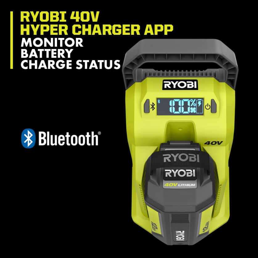 - наблюдавайте състоянието на зареждане на батерията с помощта на приложението за хиперзарядно устройство ryobi 40v