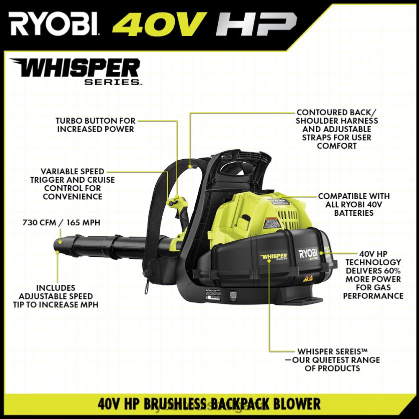 на открито бг RYOBI 40v к.с. комплект безчеткови шепот серия 730 cfm комплект вентилатор за раница 6HNVZ2301