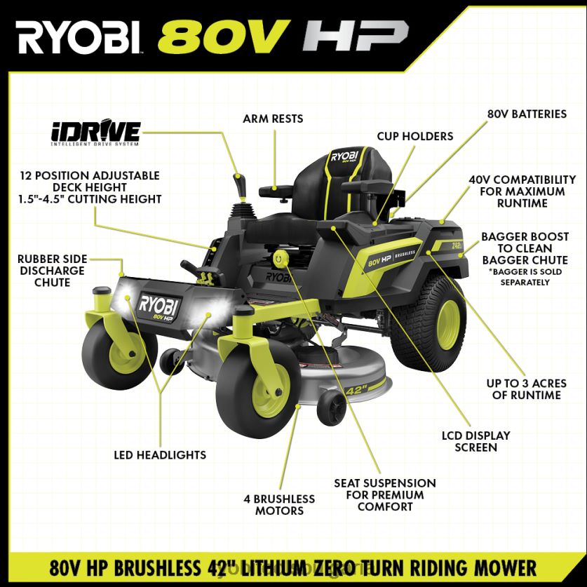 на открито бг RYOBI 80v к.с. безчеткова 42 литиева електрическа косачка с нулев оборот 6HNVZ2222