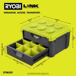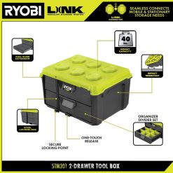 модулната система за съхранение на ryobi link революционизира индустрията за съхранение, позволявайки ви да организирате, осъществявате достъп и да транспортирате живота си. кутията за инструменти ryobi link с 2 чекмеджета осигурява съхранение на инструменти в най-трудните ситуации. оборудван с удароустойчив материал и товароносимост 40 lb. лесно обезопасете вашето преносимо хранилище за инструменти с прибиращата се стоманена заключваща лента и сигурна точка за заключване. плъзгачите с пълно удължаване осигуряват гладка работа, докато включеният комплект разделители на органайзера осигурява максимална организация на съхранение на инструментите ryobi, запазвайки малките части на мястото им. безпроблемно подреждане върху всеки артикул за мобилно съхранение на ryobi link. това е идеалното допълнение към вашата гама от мобилни инструменти. Най-доброто от всичко е, че е част от линията продукти за модулна система за съхранение на ryobi link, които използват същия locking технология за безпроблемно свързване на вашите мобилни и стационарни нужди за съхранение. притежавайте вашето пространство с модулна система за съхранение ryobi link.